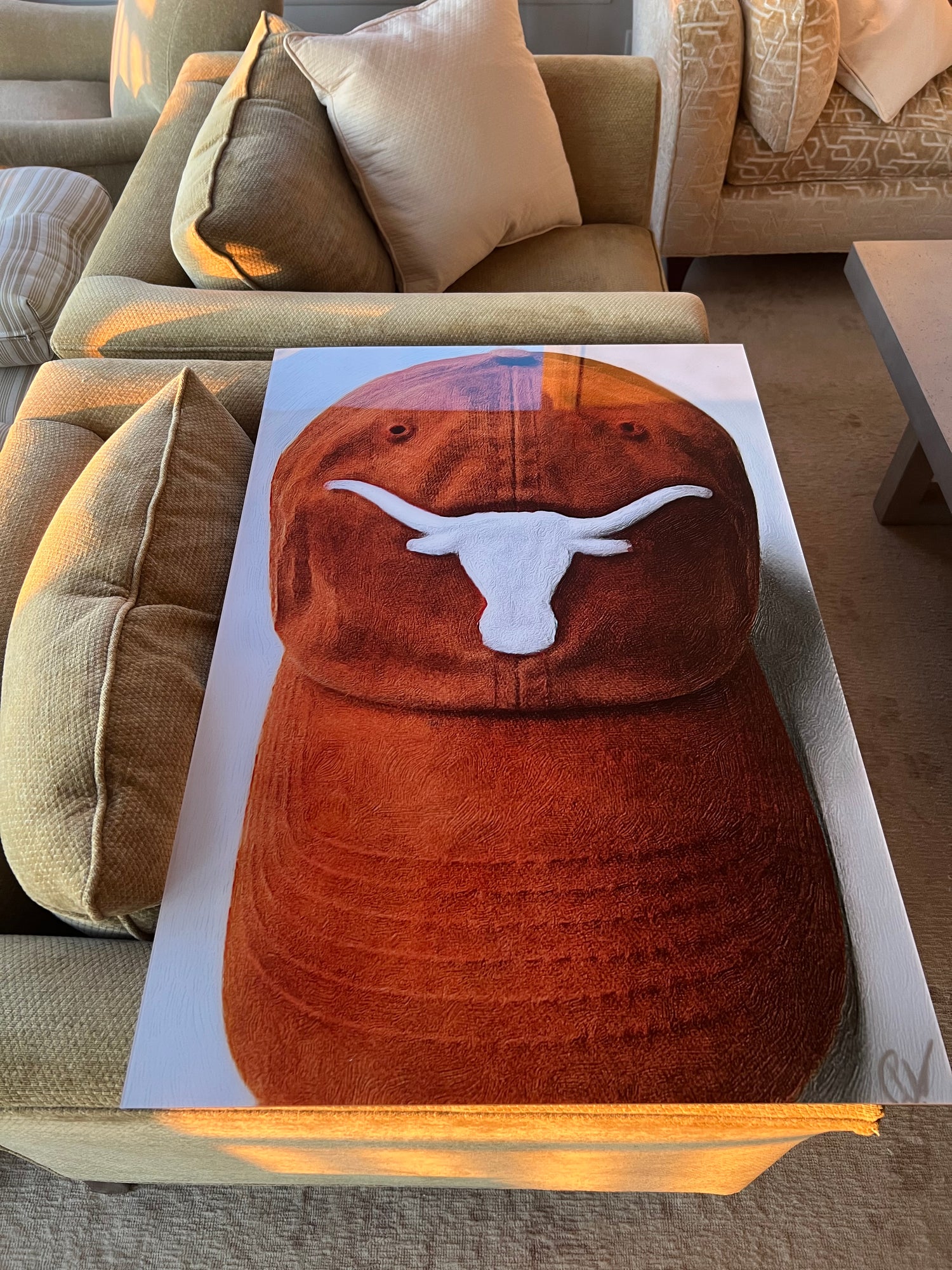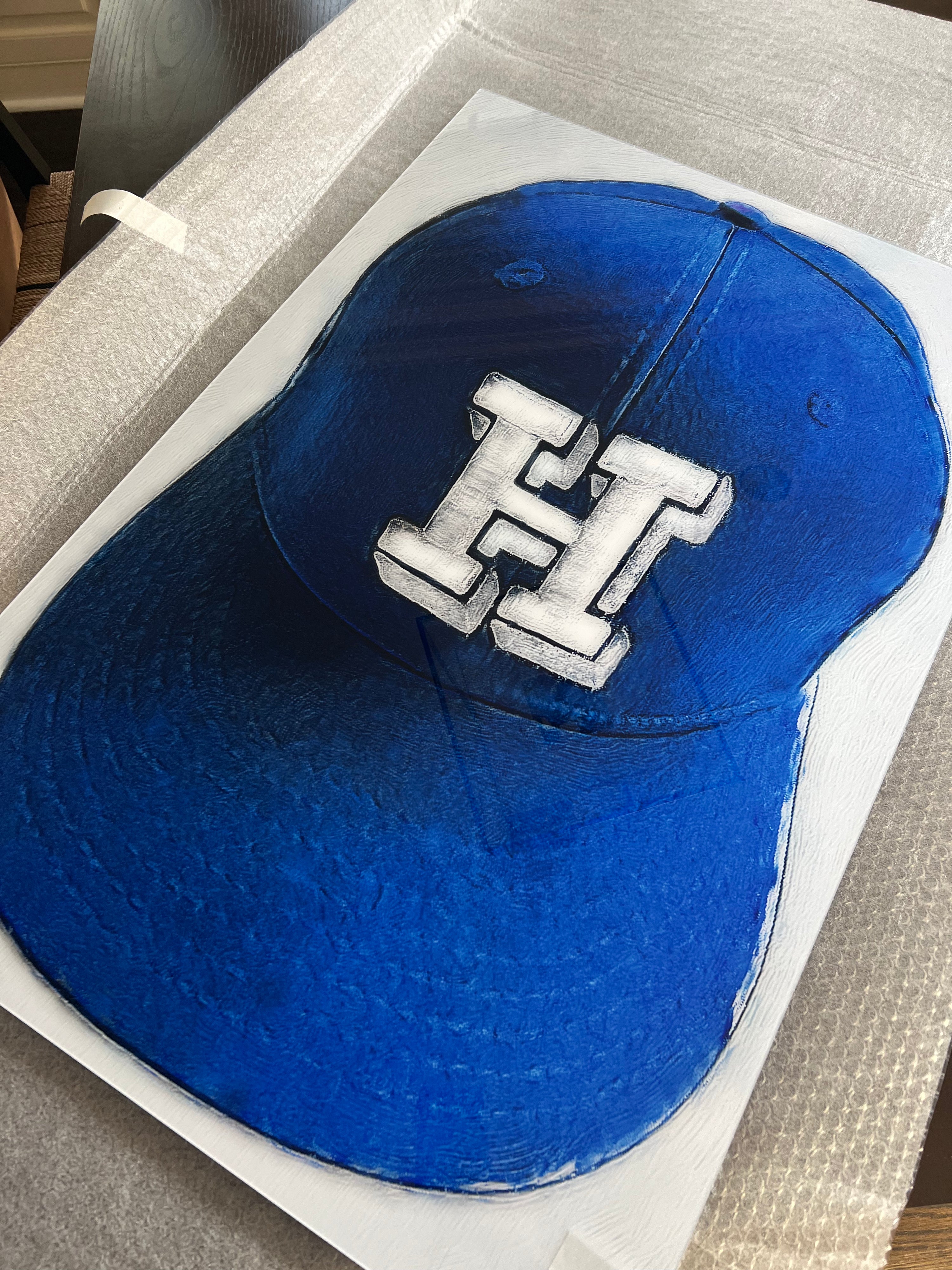 This artwork is more than just a portrayal of a football helmet; it’s a tribute to the memories, triumphs, strength, and spirit. Every brushstroke and detail tells a story, turning this into a timeless piece of art that honors its significance. Set behind acrylic glass, it reflects the journey it represents, preserving not just an image but a legacy.