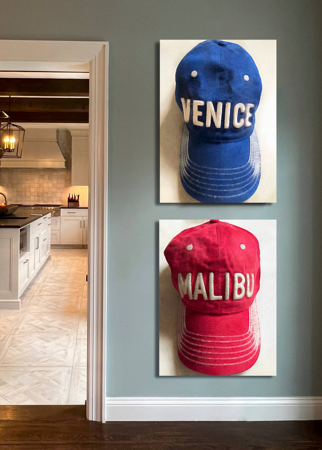 Beautiful modern farm house in Rye, New York is holding a special place for the West Coast, where both parents grew up. On display are the "Special Edition of Venice and Malibu" in size 24x36.